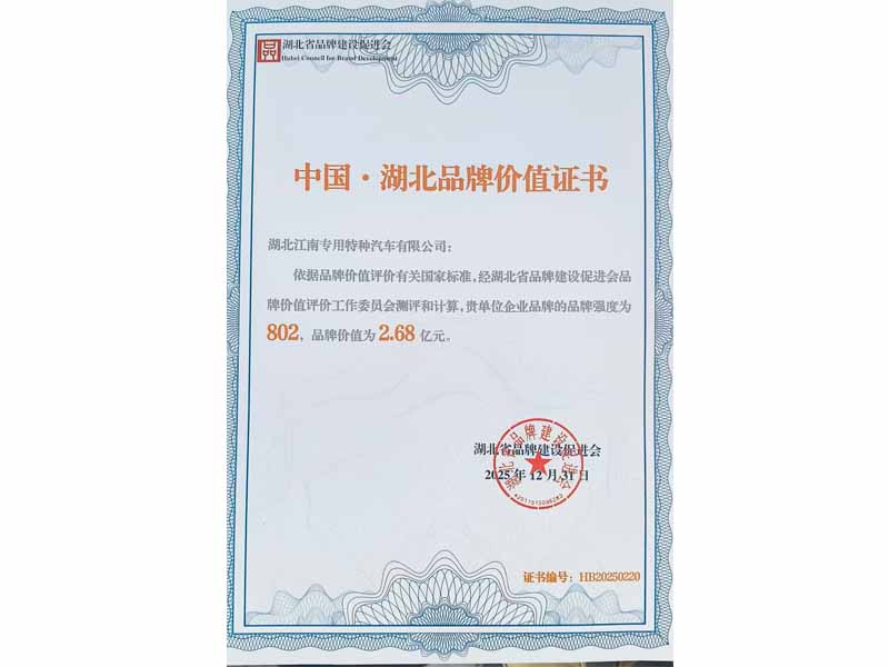 發(fā)布時間:2026-01-24 16:11:26 瀏覽量:次2026年1月23日 ,湖北品牌建設大會暨湖北品牌年度盛典,祝賀“湖北江南專汽品牌價值2.68億元”